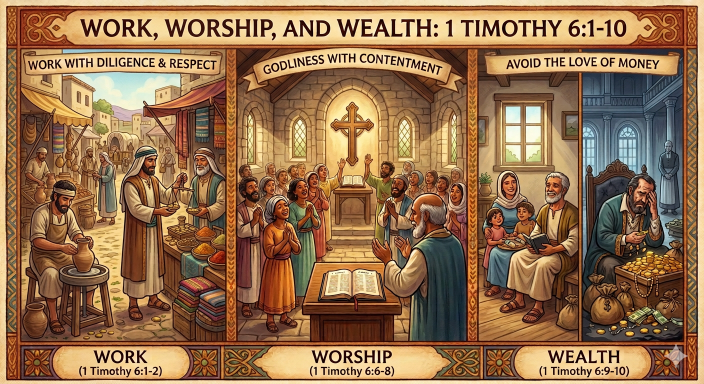 Posted on February 28, 2026 by Ajay S1 Timothy 6:1-10 – Work, Worship & Wealth Week # 16 – 01/25/2026 1 Timothy_6 1-10Download Share this: Email a link to a friend (Opens in new window) Email Share on WhatsApp (Opens in new window) WhatsApp TweetShare on Tumblr Print (Opens in new window) Print Share on Telegram (Opens in new window) Telegram MoreLike Loading...